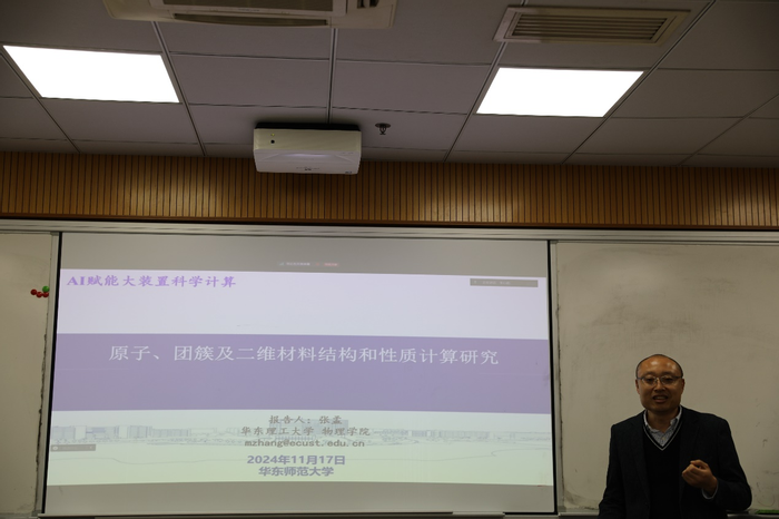 张孟副教授以“原子、团簇及二维材料结构和性质计算研究”为主题,展示了先进的计算模拟方法在原子、团簇及二维材料结构和性质计算上的工作成果。他分享了原子的量子力学理论、多粒子体系的第一性原理等理论知识,并介绍了其团队在原子、团簇结构上所做的计算工作,展示应用潜力。