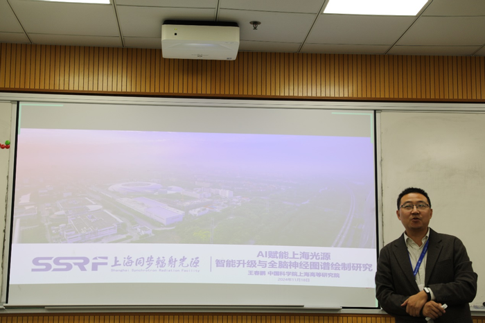 王春鹏副研究员以“AI赋能上海光源智能升级与全脑神经图谱绘制研究”为主题,介绍了其团队在上海光源科学数据管理、科学计算以及人工智能算法在上海光源的初步应用的一系列研究。他介绍了同步辐射以及同步辐射装置的概念,并进一步阐述了未来围绕上海光源数字化智能化升级改造与同步辐射人类全脑介观尺度神经图谱绘制将要开展的研究与面临的挑战。