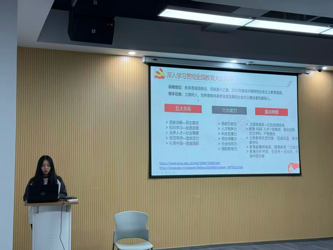 泥巴影视 博士研究生第二党支部组织委员罗一鸣在本月组织生活理论学习中,首先带领全体党员集体学习了中共中央政治局会议精神,系统阐述了“十五五”时期发展需要遵循的六大原则;随后,她结合学校党员基本培训第三次集中大课内容,与大家一同深入学习习近平总书记关于教育的重要论述,并联系学校在“十五五”阶段的使命定位与发展路径进行讲解。在此基础上,她引导支部成员围绕对学校未来五年建设的期待开展交流研讨,鼓励大家结合科研实际分享见解,激发了在场党员的思想碰撞与深入思考。