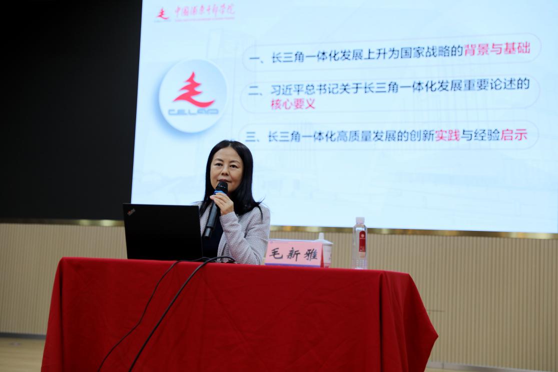 毛新雅教授的报告全面讲解了长三角一体化发展上升为国家战略的背景与基础,深入阐述了习近平总书记关于长三角一体化发展的重要论述核心要义,系统介绍了长三角一体化高质量发展的创新实践与经验启示等。