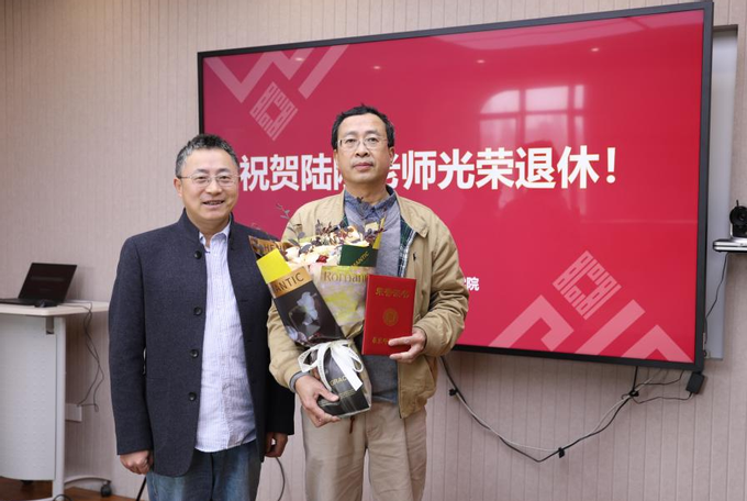 余佳衷心赞扬陆刚老师数十年来始终如一、潜心育人的奉献精神,并以扎实的专业学识培养了一代代优秀学子,他祝愿陆老师在退休后的生活中身体健康、充实愉快,并期待他继续关心和支持学院发展,常回“家”看看。