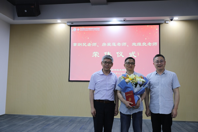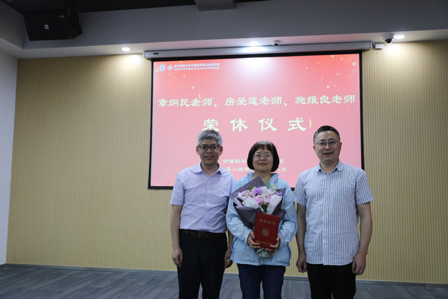 仪式上,章炯民老师深情回顾了自己的教师生涯,他表示,多年来始终坚守在教学科研一线,与同事们共事非常愉快,度过了许多美好时光,今后将继续关注与支持学院发展,退休不褪色、离岗不离心。房爱莲老师回忆起自己刚入职计算机科学系时的场景,她感谢身边良师益友的关心与帮助,并分享了自己退休后的规划,希望继续在教学科研方面贡献自己的力量。施维良老师在华东师大工作四十载,默默奉献在教学实验岗位,见证了计算机学科的成长与壮大,他对自己能够圆满完成职业生涯感到自豪,并对学院未来寄予美好祝愿。