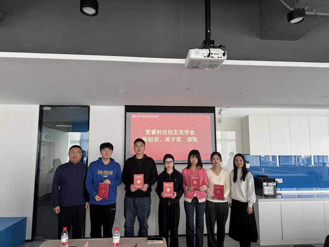 在颁奖环节,宽睿科技人力资源总监顾亚娟与学院党委副书记徐世猛共同为“新锐奖”“英才奖”获得者颁发证书;宽睿科技董事长兼CEO刘鑫与学院副院长徐飞则为“拔尖奖”获奖学生颁奖。