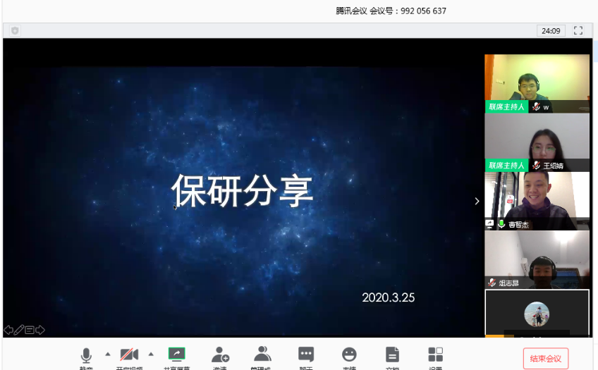 3月25日晚上7点,泥巴影视 出国(境)、升学经验交流分享会顺利举办,学院100多位学生积极参与其中。本次活动特别邀请了泥巴影视 15级本科毕业生曹智杰、温伟浩、高吉祥,19级研究生俎志昂、王绍婧,和同学们线上分享考研、保研及出国留学经验,分享会由辅导员孙庆主持。