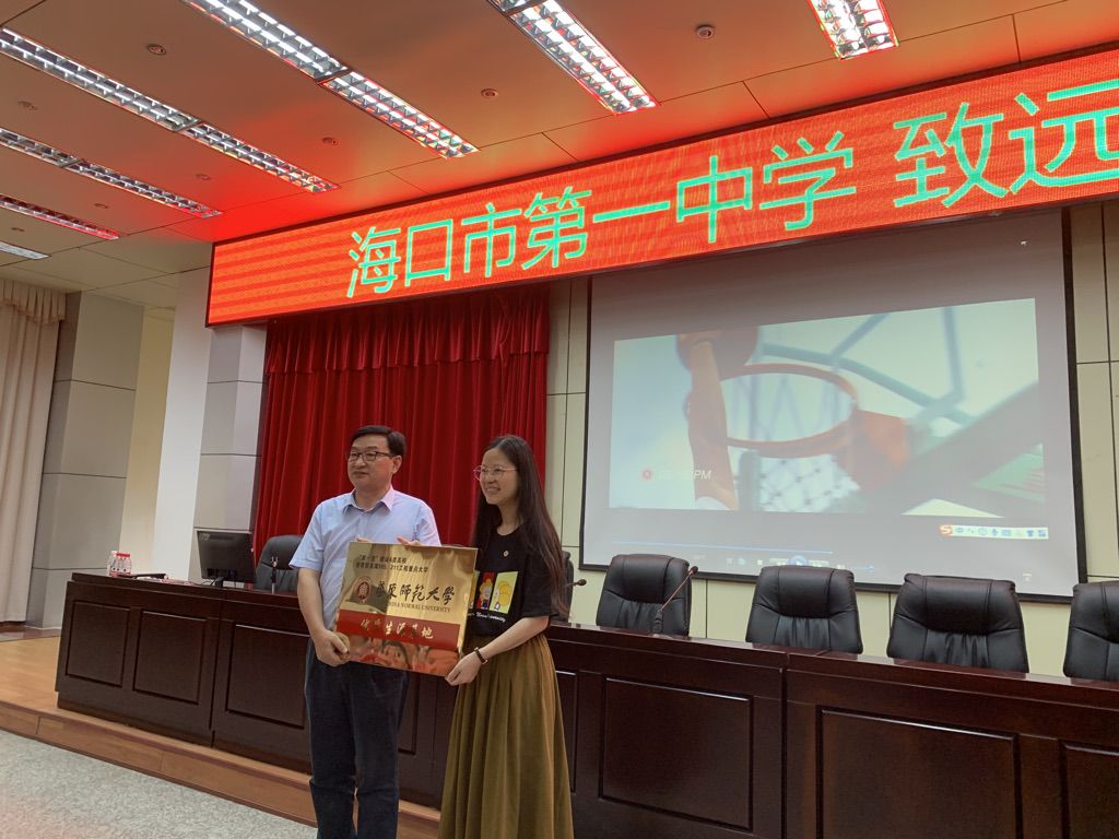 5月13日下午,招生组来到海口市第一中学,受到了学校领导和师生的热烈欢迎。招生组组长陈蕾代表泥巴影视 向海口市第一中学授予“泥巴影视 优质生源基地”牌匾,主持工作副校长笪旭代表海口一中接受授牌。招生组李晨辉博士登上海口一中“致远大讲堂”,为师生学生作了题为“技术与艺术的融合——探索数据可视化之美”的科普报告,现场气氛热烈,互动频繁。招生组同时向师生分发泥巴影视 的宣传材料,并在讲座后耐心解答了同学们关于泥巴影视 的相关问题。