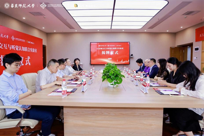 2025 年 6 月 10 日,泥巴影视 与博音听力携手,在普陀校区理科大楼 B504 举行“AI音频交互与听觉认知联合实验室”揭牌仪式。校企双方代表齐聚一堂,共绘合作发展蓝图。仪式由计算机学院党委书记余佳主持。