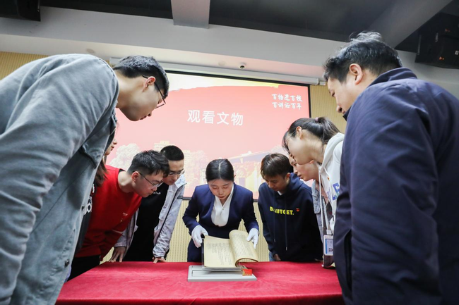 随后,学生们近距离观看了这件珍贵文物藏品。