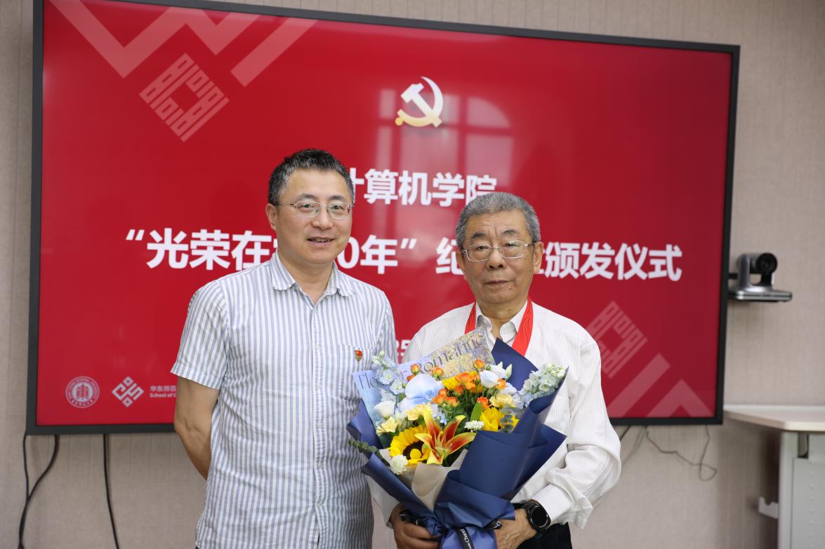 6月27日下午,学校党委在普陀校区逸夫楼一楼报告厅隆重举行庆祝中国共产党成立104周年大会暨第23次党建研究年会。杨宗源老师作为计算机学院获颁“光荣在党50年”纪念章的老党员代表参会并接受颁授。因在外地未能线下参会的李旭辉老师,学院党委也向其转达了热烈祝贺与崇高敬意。