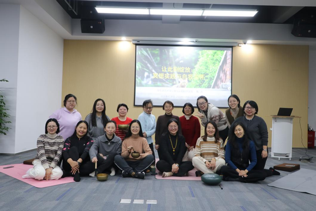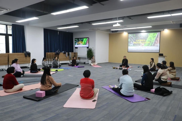 在导师的引导下,女教师们闭上双眼,调整呼吸,逐渐进入冥想状态。导师通过轻柔的音乐和语音引导,帮助女教师们放松身心,释放负面情绪。辛勤工作后的压力在这一刻得到了最好的释放。