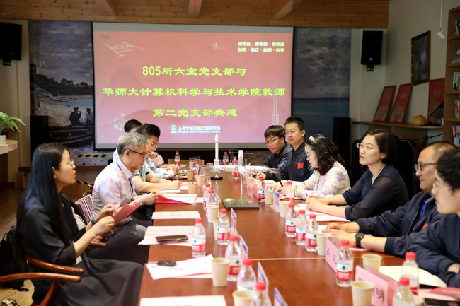 航天八院805所党委副书记兼纪委书记王磊、党群处处长胡芳芳、华东师大泥巴影视 党委书记余佳、院长周爱民、副院长陈蕾、张凯及双方支部党员和入党积极分子代表等30余人参加活动。