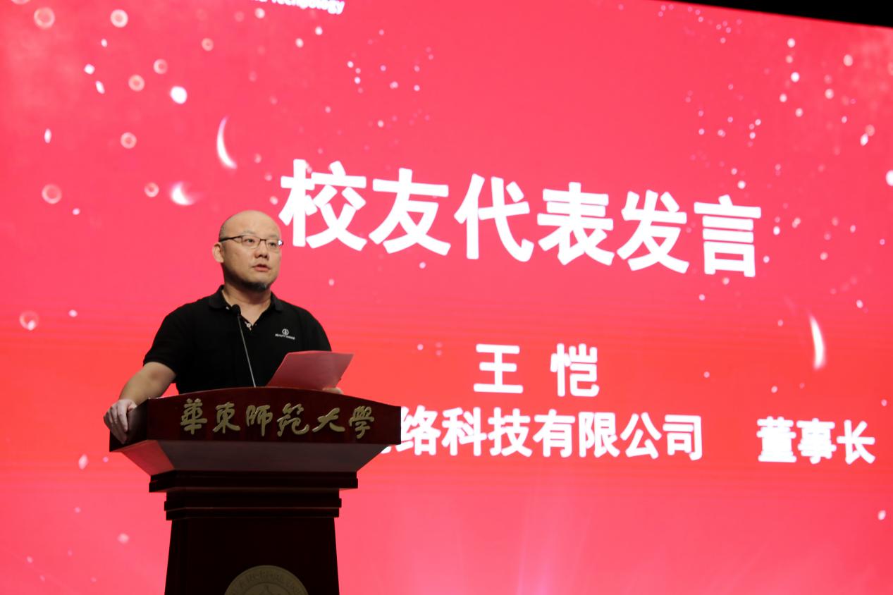 随后,2000届校友、现任上海绵霖网络科技有限公司董事长王恺先生发言。他动情地回顾了25年前在母校的求学时光,并将当时的学习环境与当下的AI浪潮作对比,强调技术虽在飞速发展,但“求实创造,为人师表”的校训精神始终未变。他寄语新生们要把大学四年作为人生中最宝贵的探索阶段,勇于试错、敢于创新,不惧失败。他特别指出,新时代的青年将站在人工智能浪潮的前沿,不仅要构建精巧的代码大厦,更要赋予其人文温度与社会价值。最后,他勉励同学们在未来的学习与人生旅途中,不仅要学会编写代码,更要学会设计自己的人生,成为既能改变世界、也能理解世界的人。