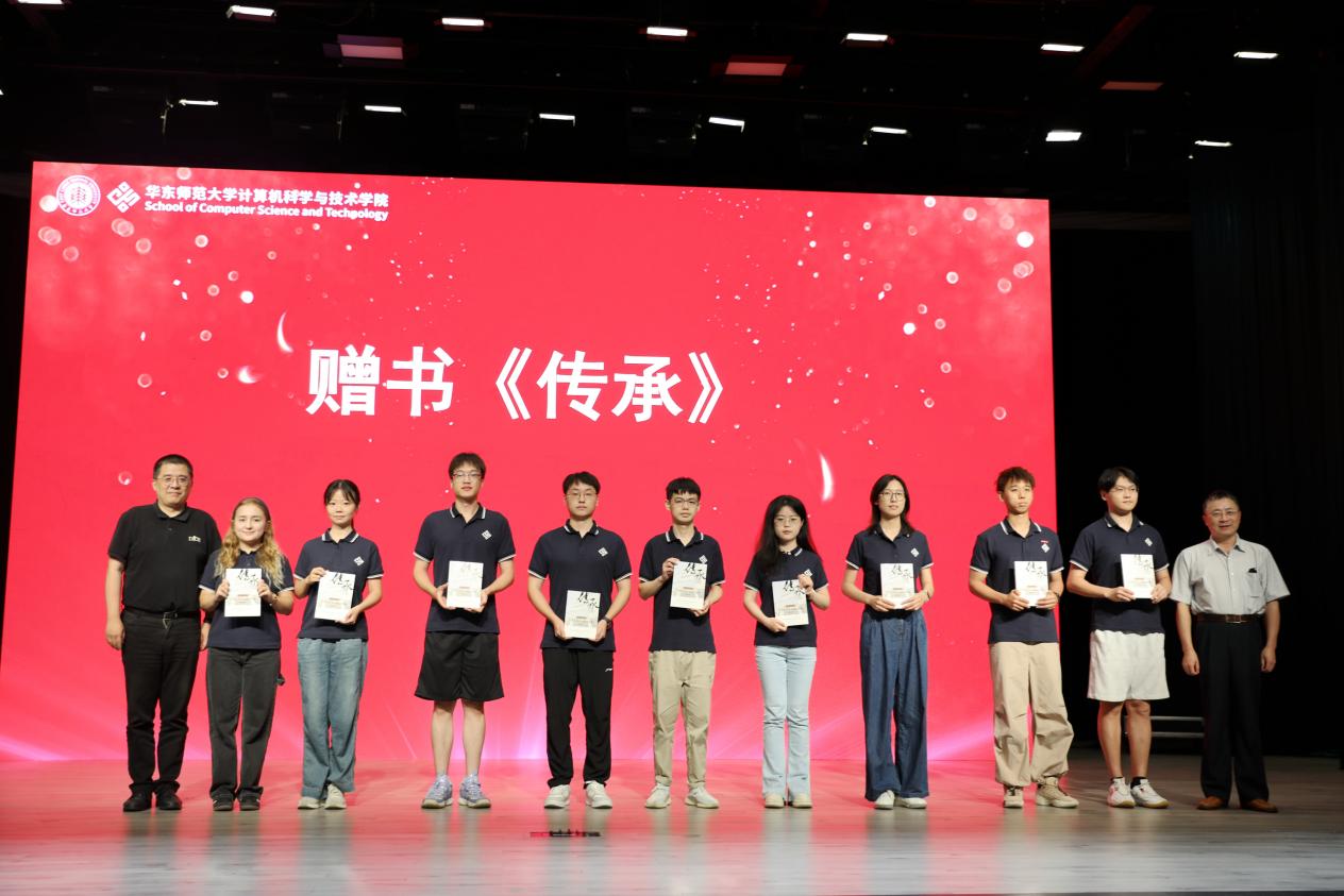 典礼上,学院党委书记余佳与副院长贺樑共同为新生代表赠送《传承》。这本由学院老教授和教师们撰写的纪实著作,记录了计算机科学与技术学科四十余年的发展历程和重大科研成果,彰显了计算机人严谨治学、无私奉献的精神风貌。