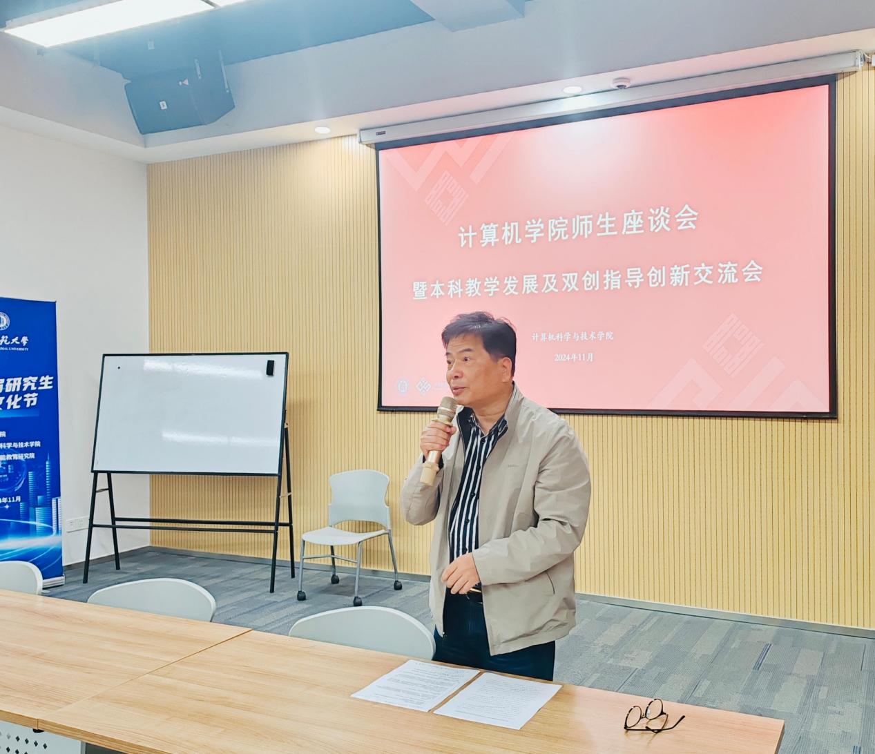 学院双创负责人童卫青老师简要介绍了学院双创建设情况,双创成果丰硕。他强调创新与创业密不可分,无创新、不创业,应注重学生创新思维培养。同时希望更多的老师和学生参与到双创项目实践中来,将学院大创传统流传下去。