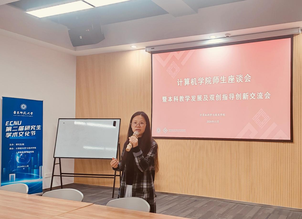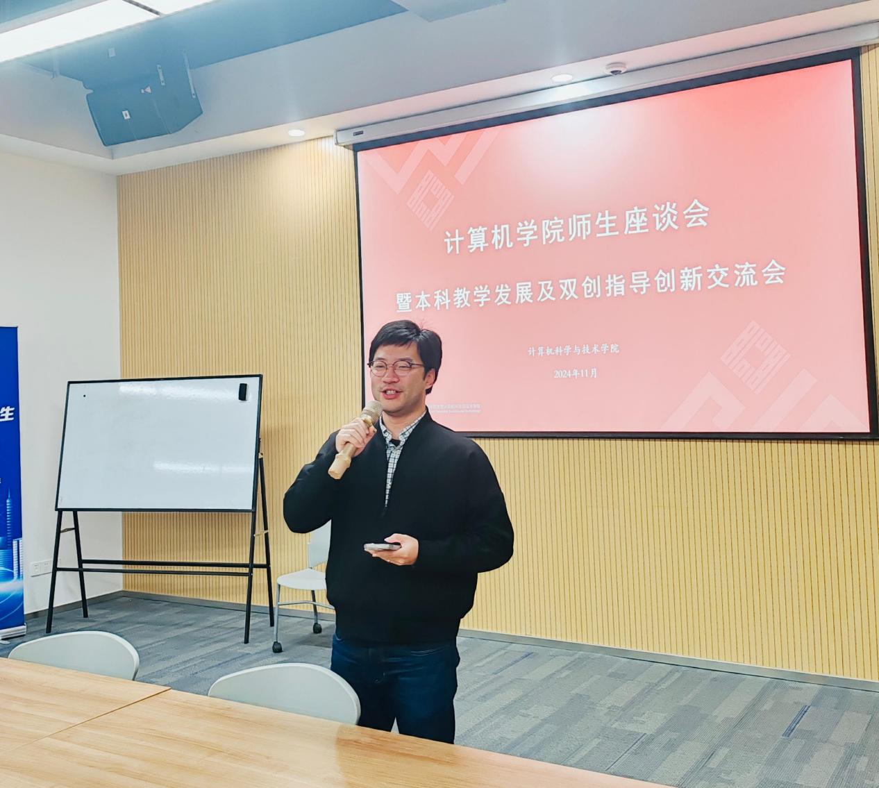 陈蕾老师表示近年学院的学生双创是学院本科人才培养的重要组成部分,近年来取得了长足进步,但仍旧存在很大的发展空间。学院大力支持双创活动发展,提供平台支撑与技术指导,希望教师们将双创育人作为学院文化积极打造,融入课堂和第二课堂。她鼓励师生们积极沟通,加强交流与反馈,实现基于双创的共同成长。