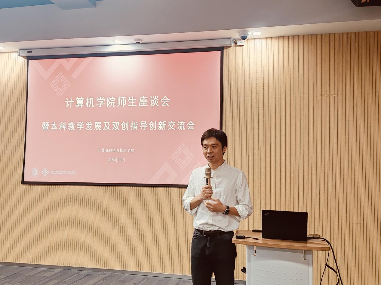 师生展开讨论。部分学生表示在双创实践中收获良多,通过解决实际问题,加深了对课堂理论知识的理解,实践经验的积累也有益于未来就业;部分同学也表达了对参与双创的时机等问题的困惑,希望老师们可以提供学习路径参考。老师们一一解答,并围绕提升学生意愿等问题展开讨论。此外,师生共同呼吁搭建线上平台,加强师生信息互通与交流沟通。
