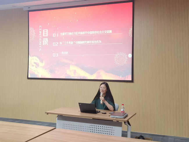 习近平总书记指出,“中国梦是历史的、现实的,也是未来的;是我们这一代的,更是青年一代的”。历史的接力棒已传递到新时代青年手中,广大青年要用伟大建党精神坚定理想信念。2023年6月8日,学院副院长陈蕾老师以《新时代的青年担当》为主题,为本科生党员及入党积极分子们带来一堂生动的党课。