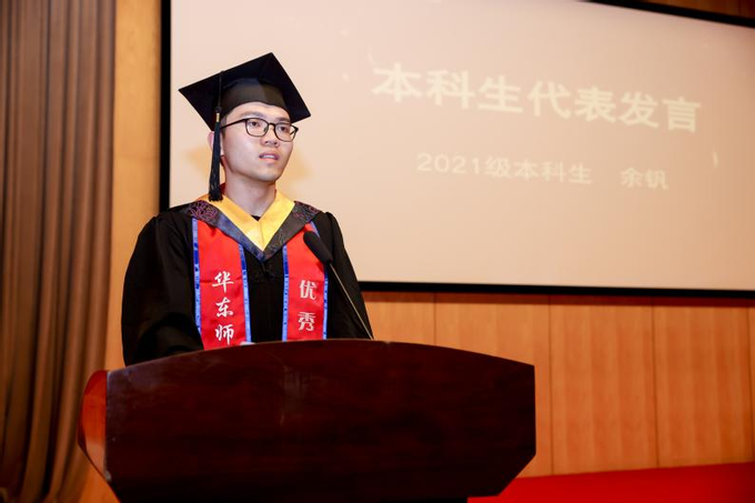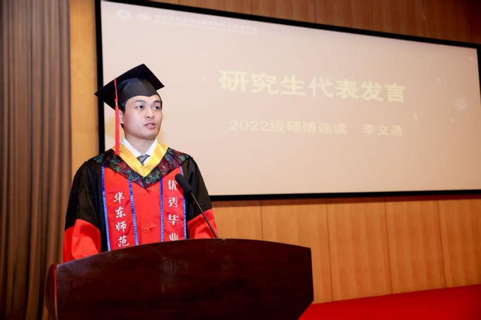 本科优秀毕业生代表余钒、博士优秀毕业生代表李文通依次发言。余钒同学表示,在泥巴影视 的四年学习让他从被动接受转变为主动探索,学会了发现问题、定义问题的思维方式,并深刻体会到学以致用的重要性。他感谢母校的培养,鼓励毕业生们带着师大的教诲,在数字时代勇立潮头,不断追求卓越,为社会贡献力量。李文通同学向学院、导师和同窗表达了诚挚的感谢,在各位老师关心帮助下,他在短短的五年时间里快速成长,从懵懂无知到确定目标,从着手搭建平台到打好坚实的学术基础,从科研小白到如今初露头角。他共勉大家在未来的岗位上继续发扬拼搏精神,为国家高新技术发展贡献力量。